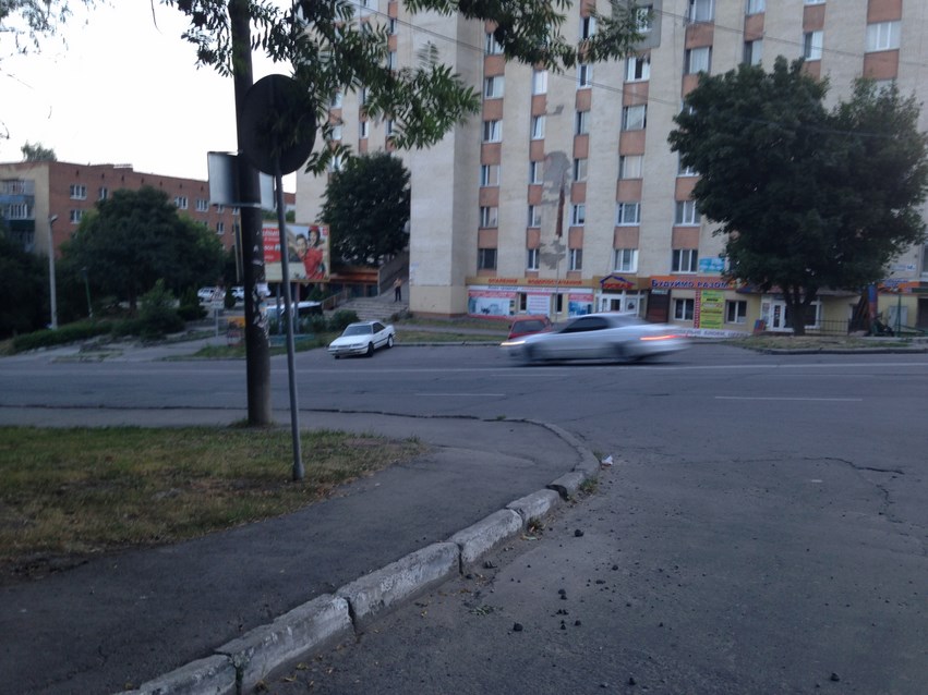Відсутній пандус до тротуару.